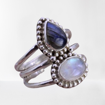 Anillo de promesa de labradorita para mujer de Plata de Ley 925 con anillo giratorio hecho a mano de piedras preciosas para ocasiones de fiesta-joyería de moda