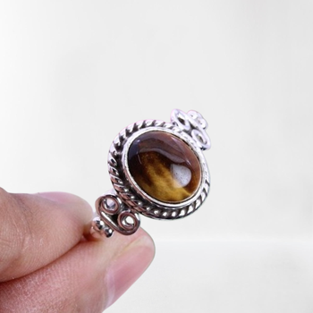 Anillo giratorio de ojo de tigre de corte ovalado de Plata de Ley 925 para boda hecho a mano sólido
