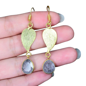 Pendientes de gota de rutilo negro con piedras preciosas hechas a mano de Plata de Ley sólida 925, joyería fina estampada para fiesta de moda de la mejor calidad para mujer