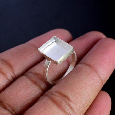 925 Silber Lünette Set Ring Spann zange, 3x3 bis 30x30 MM quadratische Form Edelstein Lünette Tasse, Blank Silber Spann zange Ring DIY Schmuck