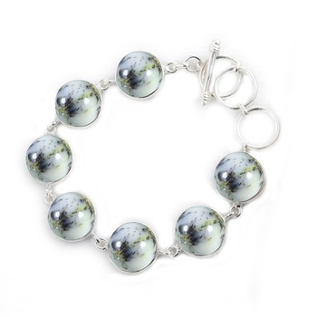 สาวสวยสร้อยข้อมือเงินสเตอร์ลิงDendriticโอปอลอัญมณีHandmadeสร้อยข้อมือเงินเครื่องประดับ 925 เงินสเตอร์ลิงเครื่องประดับ