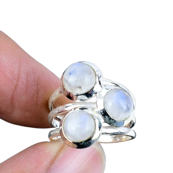 แหวนเงินสเตอร์ลิง925ทำด้วยมือแบบคลาสสิกสไตล์ Boho อัญมณีมูนสโตนสำหรับผู้หญิงของขวัญปาร์ตี้สำหรับพี่สาว